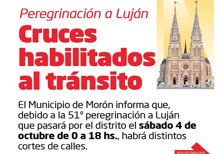 Este sábado 4 de octubre, el Municipio de Morón implementará un operativo de tránsito y asistencia por la 51° Peregrinación…
