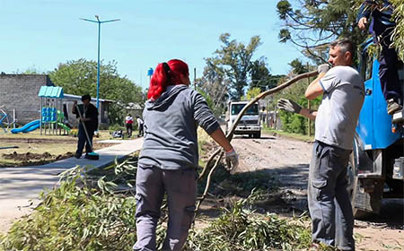 Además, se realizó el mantenimiento, limpieza, corte de pasto, barrido, recolección de ramas y residuos, la demarcación de cordones y veredas en los barrios Jardines I y Lomas; así como en Zárate y sobre la Av. Storni.