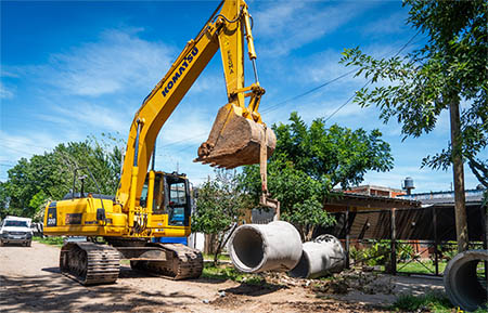 En distintos puntos del distrito, el Gobierno local lleva adelante mejoras urbanas que incluyen perfilado de calles, mantenimiento de plazas, instalación de luces y obras de infraestructura básica.