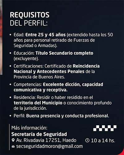 Convocatoria en Morón para integrar la Policía Municipal